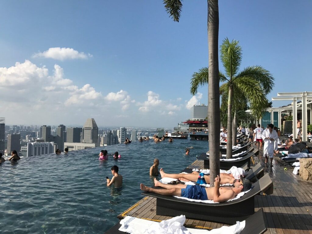世界の観光客をひきつけるのは、なんといっても屋上57階にありシンガポールが一望できる天空プール。この絶景に心を奪われた女性や、一目でいいから見てみたいと願う女性が急増中です。屋上にプールを擁するマリーナベイサンズの登場で日本からの旅行先として女性に人気のシンガポールが不動の地位となったといっても過言ではありません。